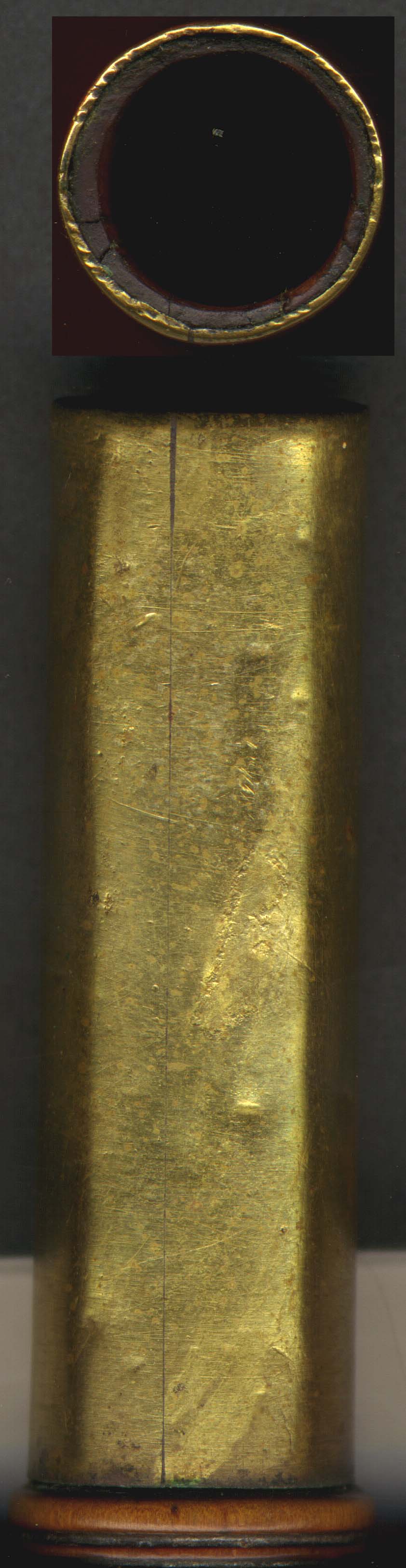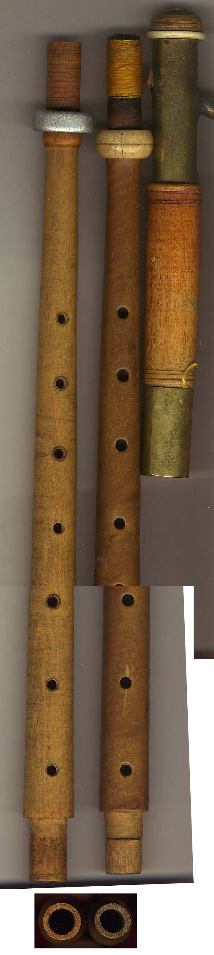 All of the brass tubing and ferrules are hand made from sheet metal rolled to size and soldered. Most of the old brass-to-wood and bone-to-wood joints are sound and tight. By contrast, almost every mounting on every modern uilleann pipe piece I own even from top name makers has gone loose after only 1-2 years!