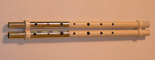 Click Here for 500 kb recording of B-flat Generation straight-tube whistle, Apartment D Chanter, and original Concert D Penny-Chanter all 2 meters from microphones. Both chanters had medium strength reeds.